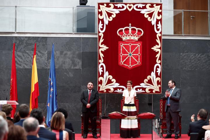 En el atrio del Parlamento foral, ante las principales autoridades y representantes de instituciones, y de estamentos cívicos, sociales, económicos, educativos y culturales de la sociedad navarra, Chivite (Cintruénigo, 1978) se ha convertido así entre aplausos en la novena persona que ocupa el cargo, la tercera mujer.