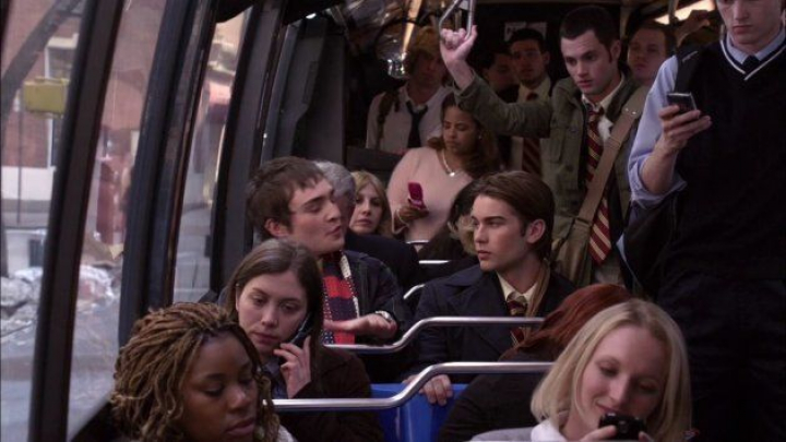 Se trata de una imagen única porque la productora grabó 121 capítulos (incluido el piloto) y nunca más se volvió a repetir una escena así en la serie. Probablemente los guionistas lo subieron al transporte público para que los dos amigos tuviesen un encontronazo con Dan Humphrey, el chico humilde de Brooklyn. Simplemente por eso.