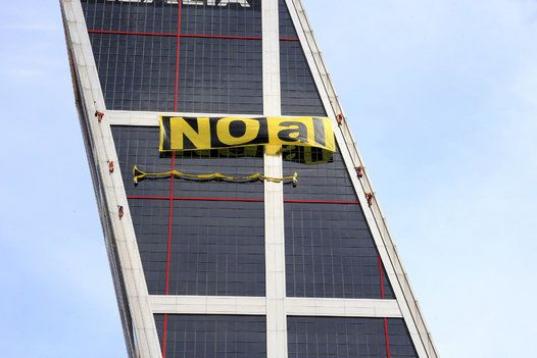 Ocho de los activistas han sido detenidos por resistencia y desobediencia a la autoridad, mientras que otros dos han sido arrestados tras haberse encaramado a una farola, según han informado a Europa Press fuentes policiales.