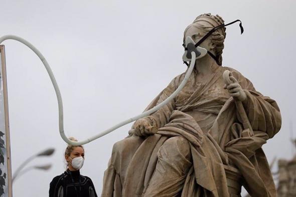 Varios activistas de Greenpeace, detenidos por ponerle una mascarilla a la Cibeles