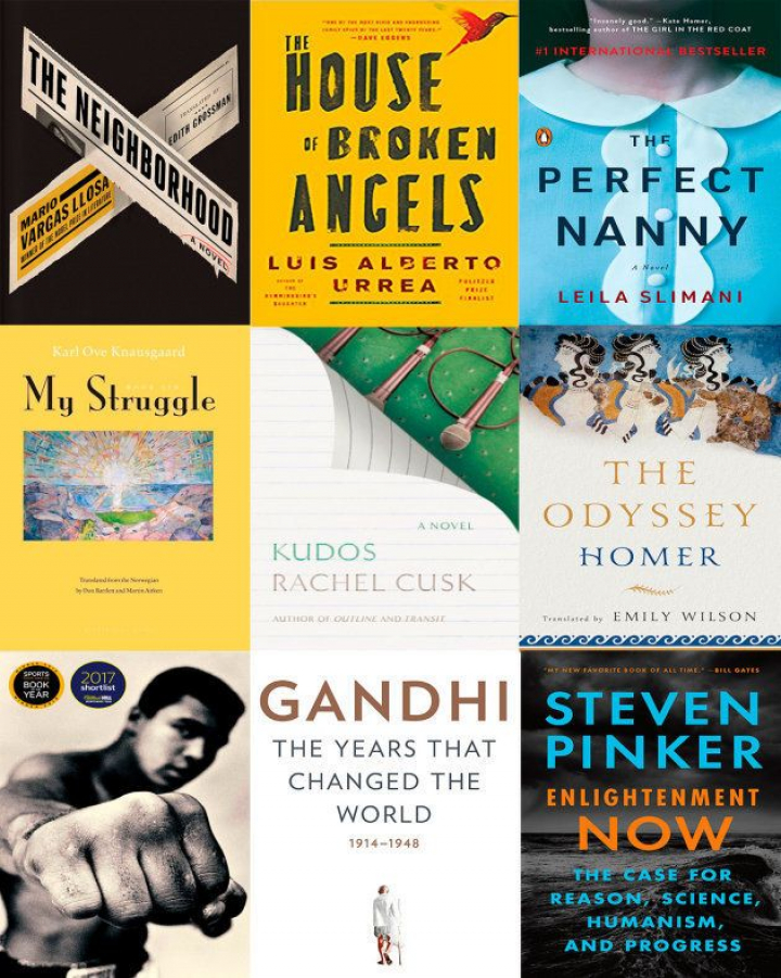 Una lista que, como cada año, incluye mayoritariamente libros escritos originalmente en inglés. Las traducciones en el mundo anglosajón no pasan del tres por ciento. Entre las pocas obras de este año destaca una nueva traducción de Odisea de Homero, la novela del peruano Vargas Llosa Cinco esquinas,presentada como The Neighborhood, la del mexicano-estadounidense Luis Alberto Urrea titulada The House of Broken Angels que acaba de publicar en España ADN como La casa de los ángeles rotos; las de los franceses Romain Gary, con su última novela antes del suicido The Kites, y el premio Goncourt de Leila Slimani, Canción dulce (traducida como The Perfect Nanny) y, claro, uno de los fenómenos editoriales y literarios de la década: Karl Ove Knausgaard y su Mi lucha, este año con su sexto y último volumen.