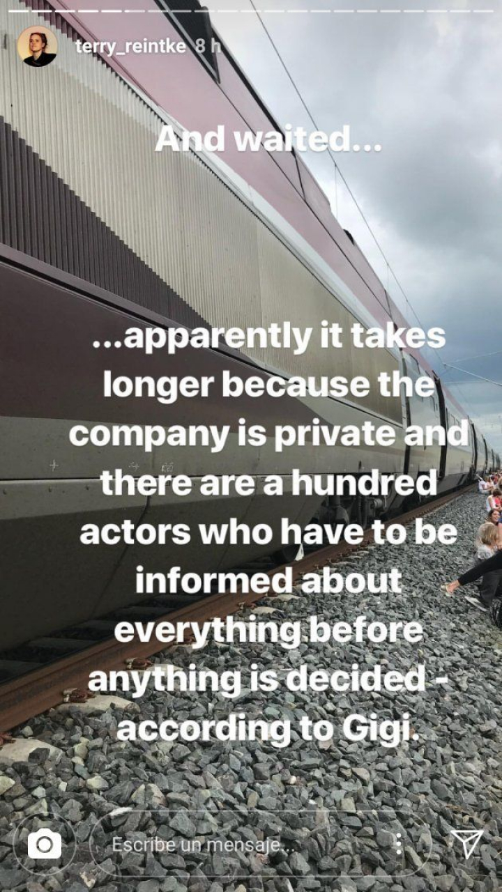 "Esperamos durante un rato dentro del tren. Luego, gracias a la intervención de nuestro maravilloso conductor Gigi nos dejaron salir fuera del tren...".