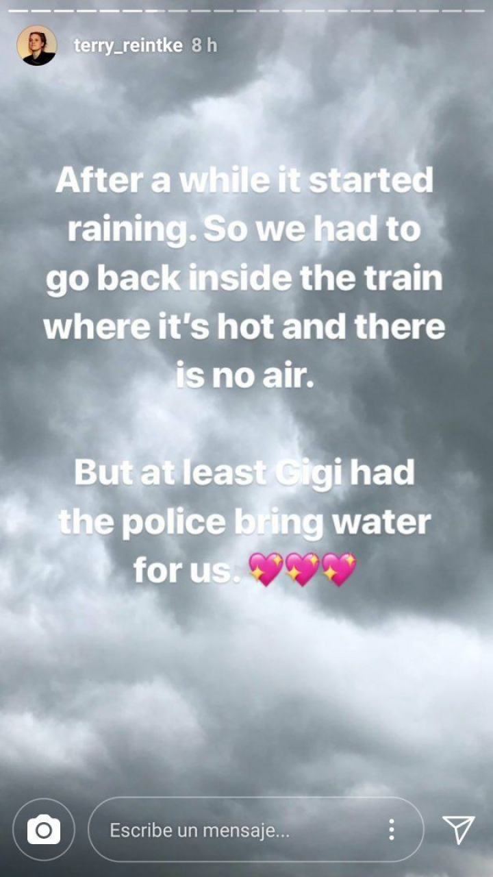 "Después de un rato, comenzó a llover. Entonces tuvimos que volver dentro del tren, donde hacía calor y no funcionaba el aire acondicionado. Pero, al menos, Giga pidió a la policía que nos trajera agua".