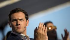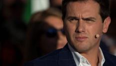 Ciudadanos despliega una lona con un chat inventado entre Sánchez, Otegi y Puigdemont