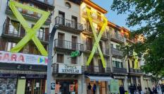 En el centro de la gigantesca pancarta que cuelga en este inmueble de la calle Goya, aparece el mensaje “Vamos a cerrar este grupo” y más abajo “Vota Cs”.