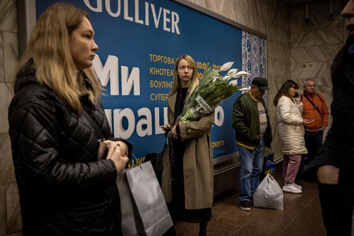 Ciudadanos de Kiev refugiados en el metro rompen a cantar durante los bombardeos rusos