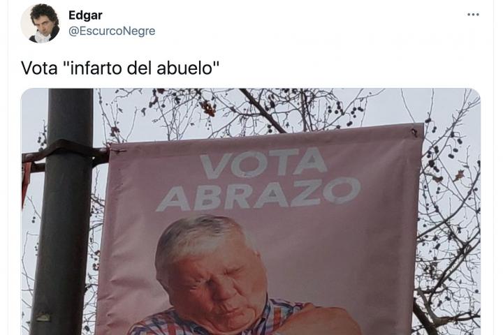 Las imágenes mostraban a personas dándose un abrazo a sí mismas, con el rótulo “Vota abrazos” y sobre fondos de varios colores, en alusión indirecta al resto de formaciones. Claro, que el efecto logrado no ha ido por terrenos políticos, sino más bien por el despiporre general.