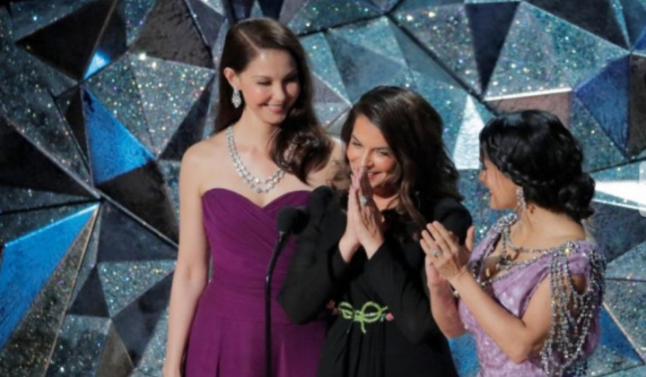 Ashley Judd, Annabella Sciorra y Salma Hayek, en el escenario de los Oscar 2018EFE
