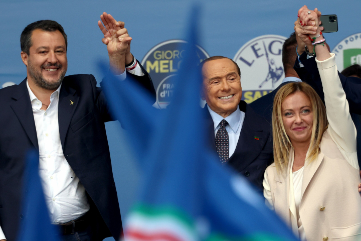 Luego está la confección del gabinete. Hermanos de Italia se pavonea del resultado que parece que va sacar y quiere mando a la hora no sólo de elegir a la primera ministra -el porcentaje de voto será alto y Meloni será la elegida-, sino las demás carteras. Salvini avisa de que cada cargo ha de ser por consenso y que ellos sí tienen gente con experiencia de gestión. Rencillas anticipadas que auguran tiempos no tan estables como promete el trío, por más que en campaña hayan garantizado un todo “sólido, cohesionado, con un fuerte mandato popular y que durará cinco años”, para “gobernar bien y gobernar juntos”.