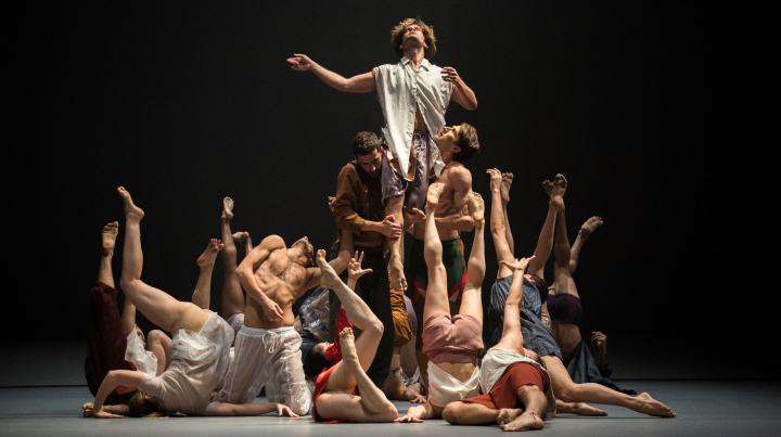Como esa bola que en In Paradisum cae sobre la orgiástica fiesta de la escena final sobre unos cuerpos aparentemente desnudos al haberse quedado en mallas color carne. Una bola que por la música que suena en ese momento se piensa que se convertirá en la bola de espejitos discotequera. No es así. Con inteligencia Antonio Ruz la convierte en una especie botafumeiro que da foco sobre el cuerpo de baile, ilumina parte de esos cuerpos que bailan una coreografía orgiástica, como se ven, de nuevo, en los cuadros de El Bosco.
