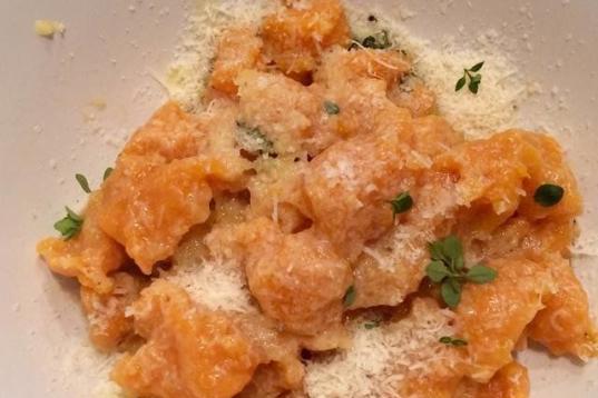 INGREDIENTES: 500 gramos de calabaza, 200 gramos de harina, sal, 40 gramos de manteca, 40 gramos de queso parmesano rallado, pimienta recién molda y hojas de tomillo (o de salvia).