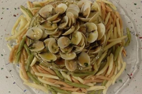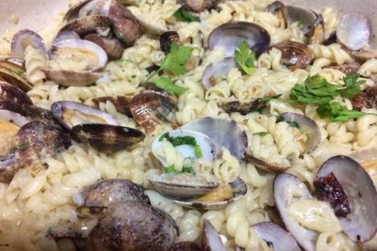 INGREDIENTES: pasta fusilli, almejas, ajo, perejil, vino de manzanilla, pastillas de caldo concentrado de verduras y aceite de oliva virgen extra.