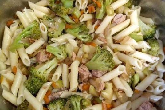 INGREDIENTES: un brócoli, una cebolla, 1 o 2 zanahorias, aceite de oliva, soja y macarrones.