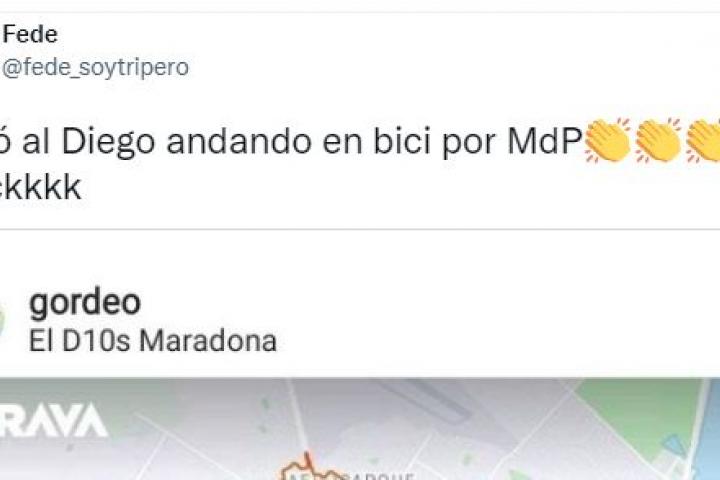“Dibujó al Diego andando en bici por Mar de Plata. Craackkkk”, ha escrito Fede, el que ha compartido en Twitter la imagen de la actividad.