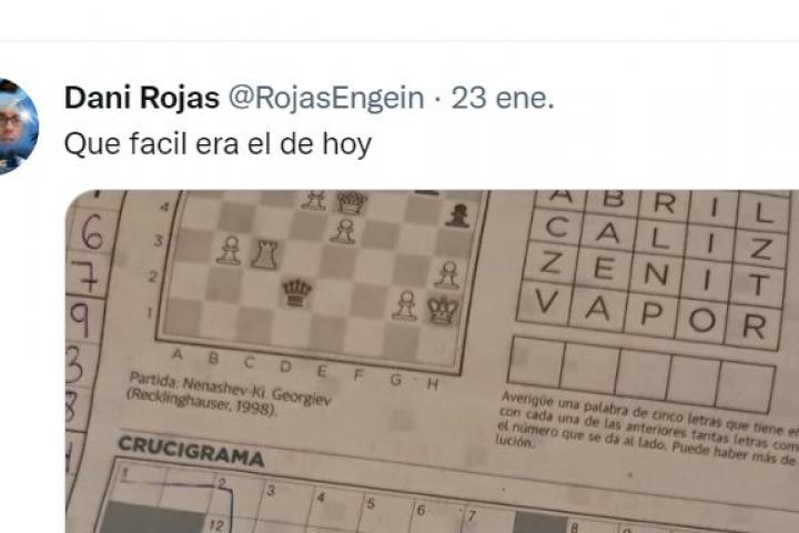 “Qué fácil era el de hoy”, ha escrito junto a la imagen. Su publicación en Twitter se ha hecho viral y lleva más de 24.000 me gusta con multitud de respuestas en el que han resuelto algún pasatiempo de la foto o han reaccionado a la idea de Rojas.