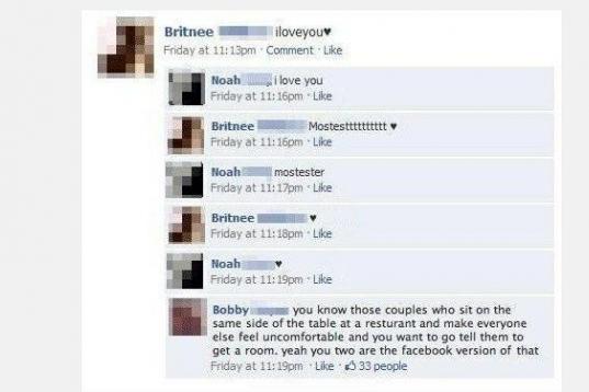 Ojo al comentario que se descarga: ¿Sabes esas parejas que van a un restaurante y hacen sentirse incómodos al resto y te apetece decirles que se alquilen una habitación? ¿Sí? Pues vosotros sois su versión de Facebook".