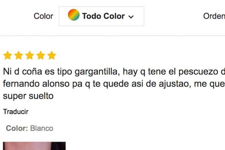 Comentario dejado en Shein a una gargantilla.EL HUFFPOST