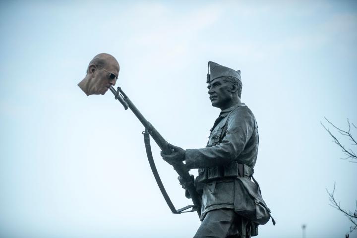 La actuación artística, no atribuida a ningún grupo ni organización concreta, se ha realizado entre varias personas y ha consistido en la colocación de una cabeza de silicona del dictador Francisco Franco en la bayoneta que sujeta la figura del legionario.