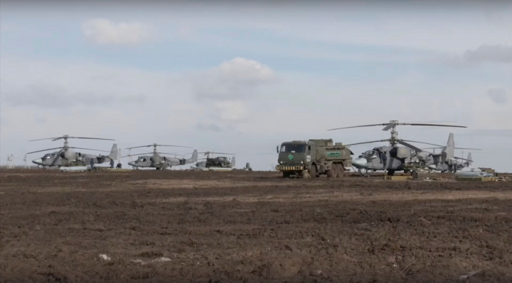 En la siguiente fotografía puede verse una concentración de helicópteros en la localidad bielorrusa de Mazyr. Precisamente, esta ciudad se sitúa en la provincia de Gomel, misma región en la que tuvo lugar el lunes la primera toma de contacto de las negociaciones. Es decir, en el momento en que ambos bandos negociaban sentados a la mesa, Rusia seguía concentrando tropas en la misma zona.