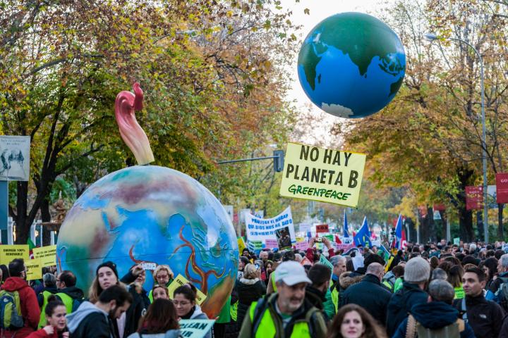 Una movilización organizada por Greenpeace durante la COP25. NurPhoto via Getty Images