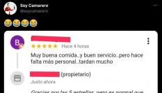 Un cliente deja el comentario más cruel e ingenioso tras su nefasta experiencia en un restaurante