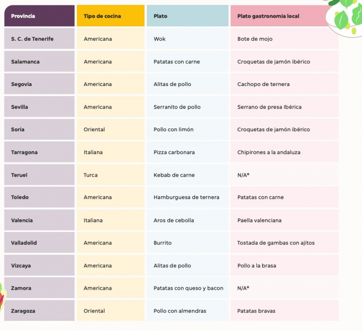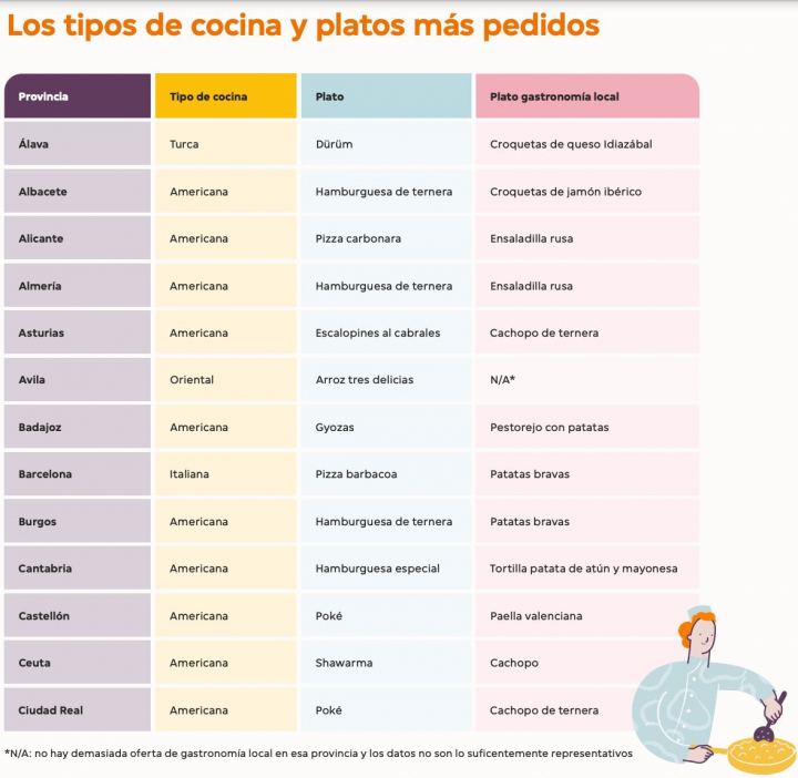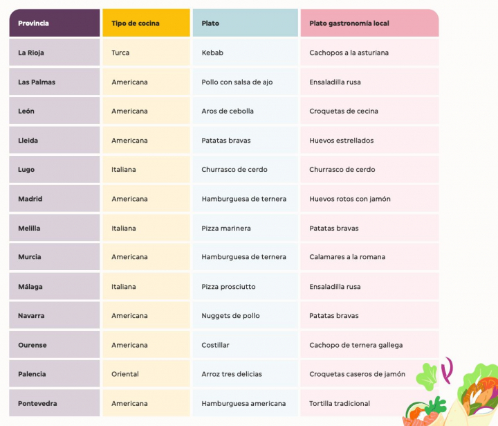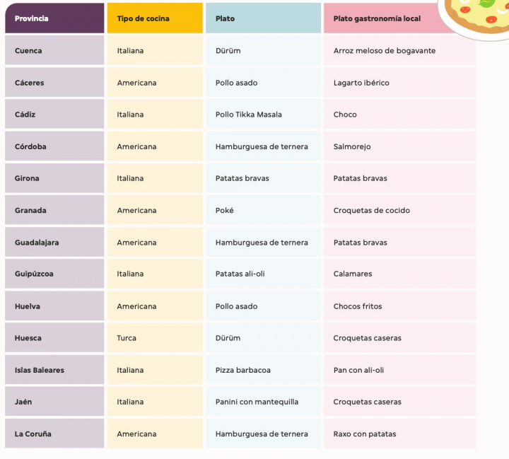 Aquí puedes explorar más en detalle cuáles son los tipos de cocina y platos más pedidos en cada provincia a Just Eat:
