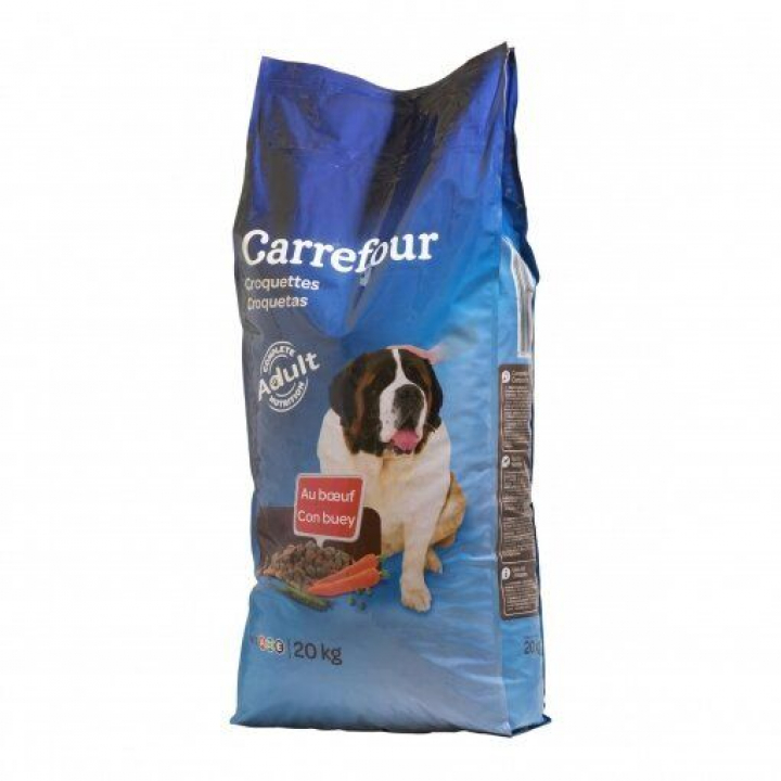 Otra de las marcas blancas que más consumen los perros es la de Carrefour. No tiene marca propia, sino que recibe el nombre de cadena de supermercados de origen francés, y tampoco aparece en el ranking de mejores piensos de la OCU.