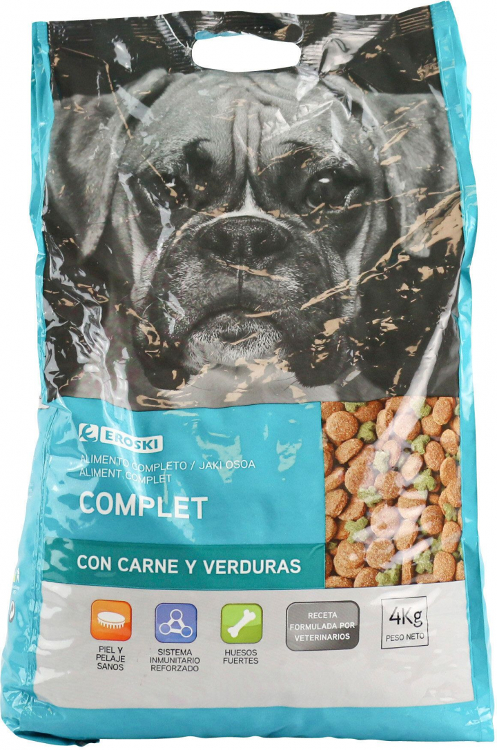 A diferencia de la marca blanca de Mercadona, en Carrefour disponen de comida seca y húmeda para perros pequeños, medianos y grandes, y también para adultos y cachorros. Los precios van desde los 0,50 euros de la lata de 400g de comida húmeda de pollo hasta los 14 euros del saco de 20kg de pienso seco con buey, que incluye hasta un 4% de carne de este animal.