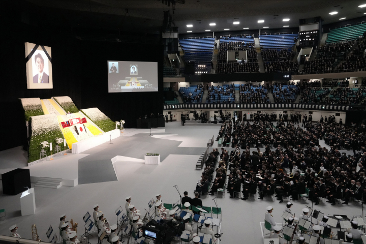 Las exequias empezaron pasadas las 14.00 hora local (siete horas menos en Madrid) en el pabellón Nippon Budokan de Tokio tras el traslado allí de la urna con las cenizas de Abe, e incluyen intervenciones en recuerdo a su figura, la celebración de un minuto de silencio, la proyección de un vídeo sobre él y ofrendas florales, entre otros actos.