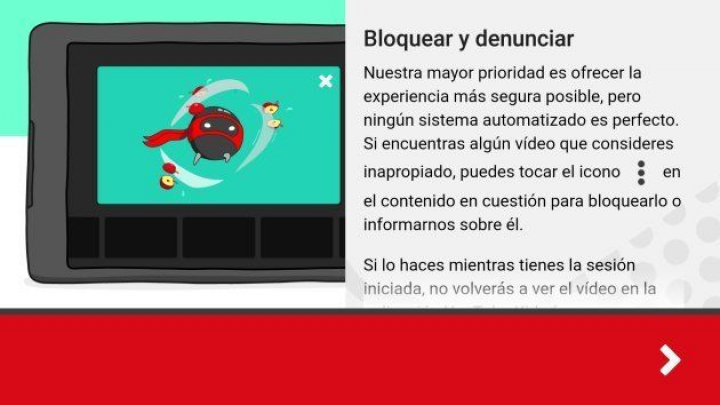 Si se pincha en los tres puntos a la derecha de cada vídeo podrás bloquear o denunciar el contenido inapropiado para tus pequeños. Si lo haces con la sesión del menor iniciada, no podrás volver a acceder a él.