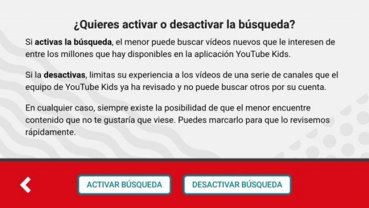 - Si optas por desactivarla, solo podrá ver los contenidos que YouTube Kids ha revisado y considera adecuados para el menor.