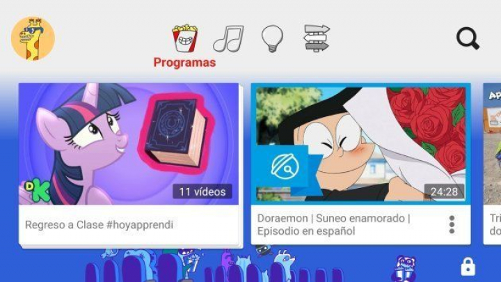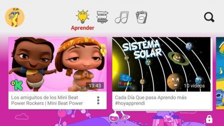 La aplicación tiene una amplia variedad de contenidos aptos y recomendados para la edad de cada menor. Los vídeos están clasificados por categorías: programas, música, aprender y explorar.