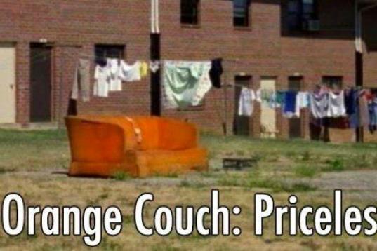 El famoso sofá naranja fue recogido de un vertedero, pero luego tuvieron que gastarse 5.000 dólares para conseguir una réplica, ya que alguien volvió a tirarlo por error.