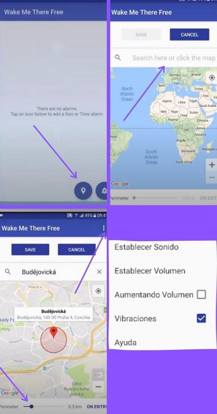 Los usuarios de Android necesitan descargarse una aplicación móvil para que les notifique si han sobrepasado el límite de un kilómetro. WAKE ME THERE (gratis) permite configurar una alerta que avise cuando se haya llegado al límite.
