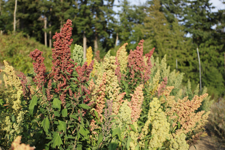 La parte de la quinoa que se consume de forma más popular es la semilla (porque, a modo de recordatorio, la quinoa es una semilla, no un grano, ni por tanto un cereal). Para obtener la semilla, primero la planta tiene que florecer. Así es la planta una vez que florece:
