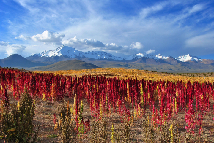 La quinoa prospera en los climas frescos y es muy tolerante a la falta de riego. También puede soportar altos niveles de sal, viento y escarcha, lo que permite su cultivo en zonas altas. Ese es el motivo por el que se convirtió en el principal grano en los Andres, siendo cultivada por los incas desde al menos el año 3.000 antes de Cristo.