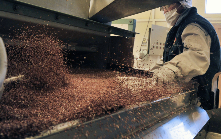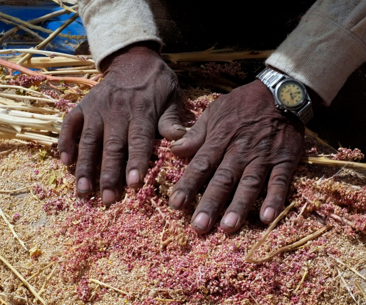 En la producción comercial la técnica es algo más avanzada. La quinoa necesita ser enjuagada o pulida antes de comerla para quitarle la capa de saponina —su protección natural contra pájaros e insectos—, que tiene un sabor algo amargo.