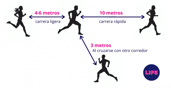 La sensación de ahogo cuando se va con las mascarillas habituales —quirúrgicas o higiénicas— resulta inevitable y por eso el especialista insiste en que la mejor medida de protección frente a la Covid-19 al practicar deporte es la distancia de seguridad. Sin olvidar de que en estos casos debe ser mayor a lo habitual, ya que la cantidad de litros de aire movilizados por minuto aumenta al realizar esfuerzos.