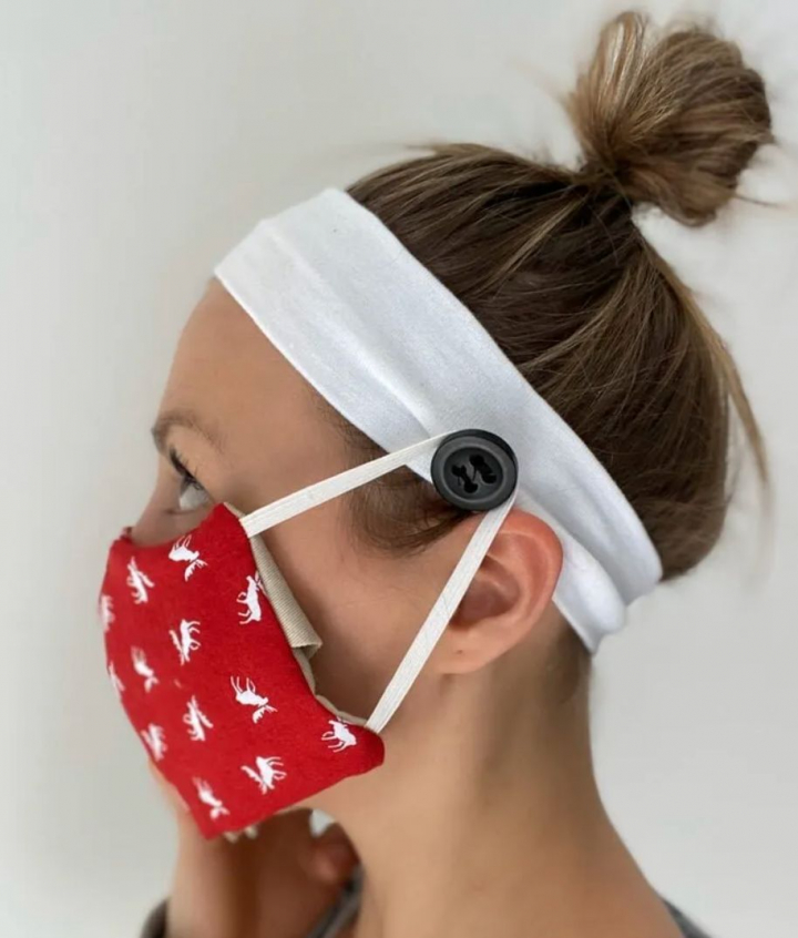 La diadema no solo es uno de los accesorios de moda, también sirve para apartar el pelo de la cara. Si quieres, puedes aprovecharla y coser un par de botones, al igual que en la gorra, para enganchar la mascarilla y llevarla durante varias horas sin irritarte.