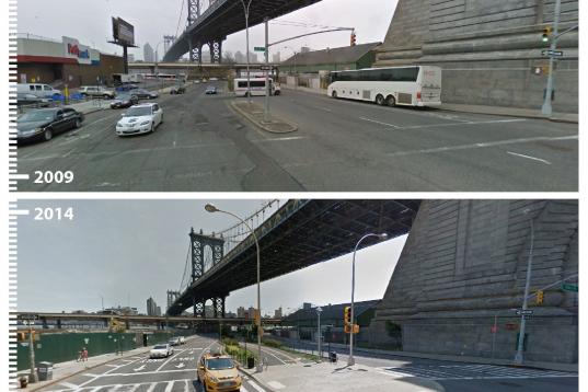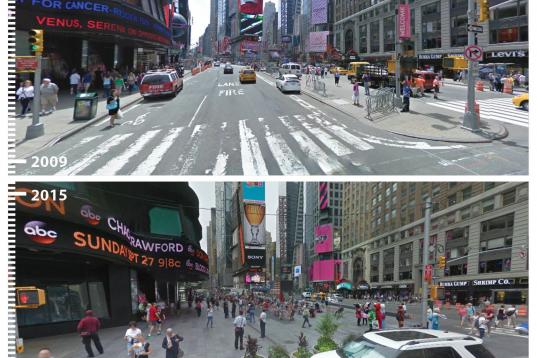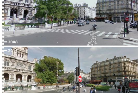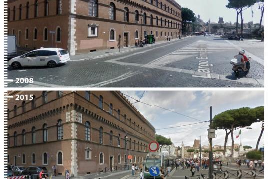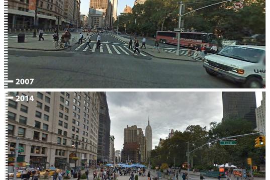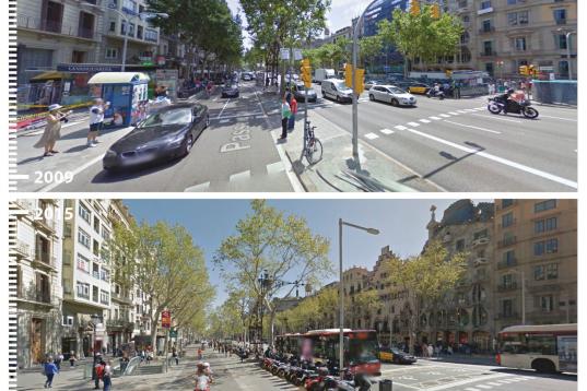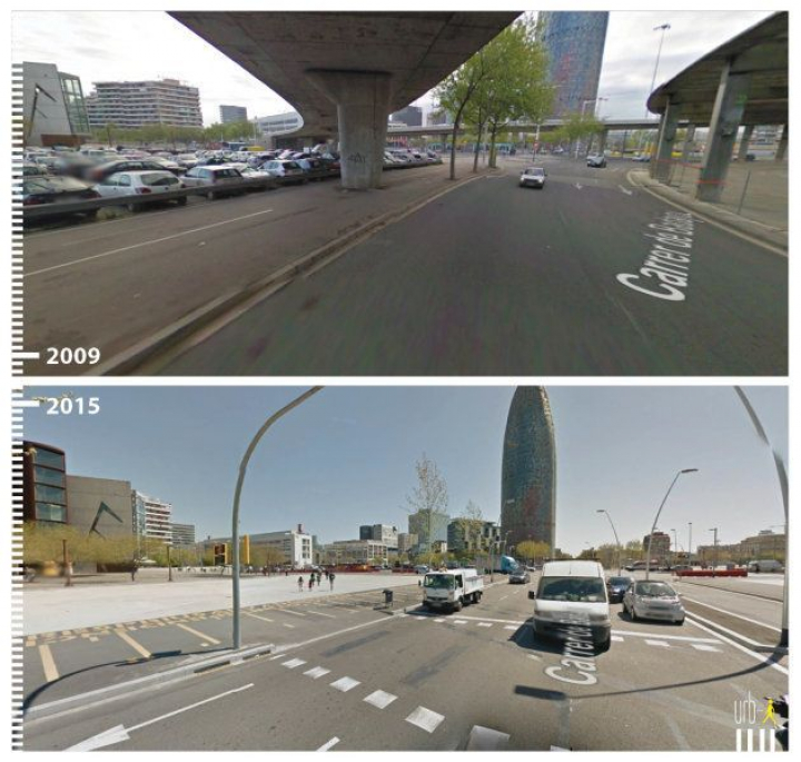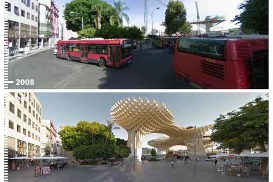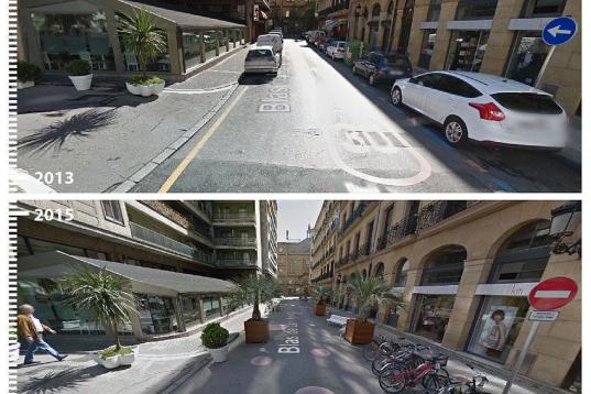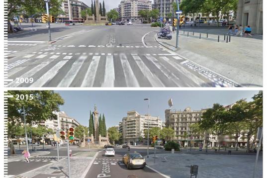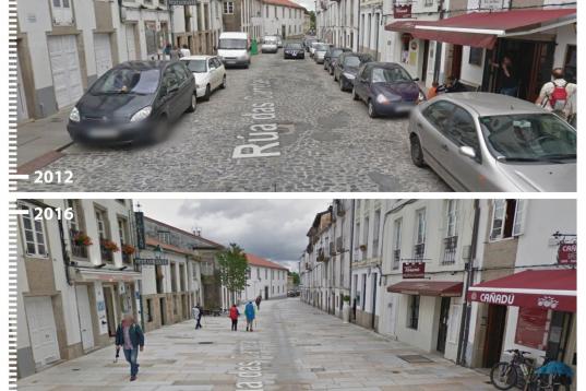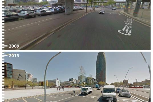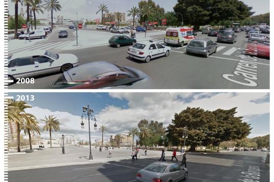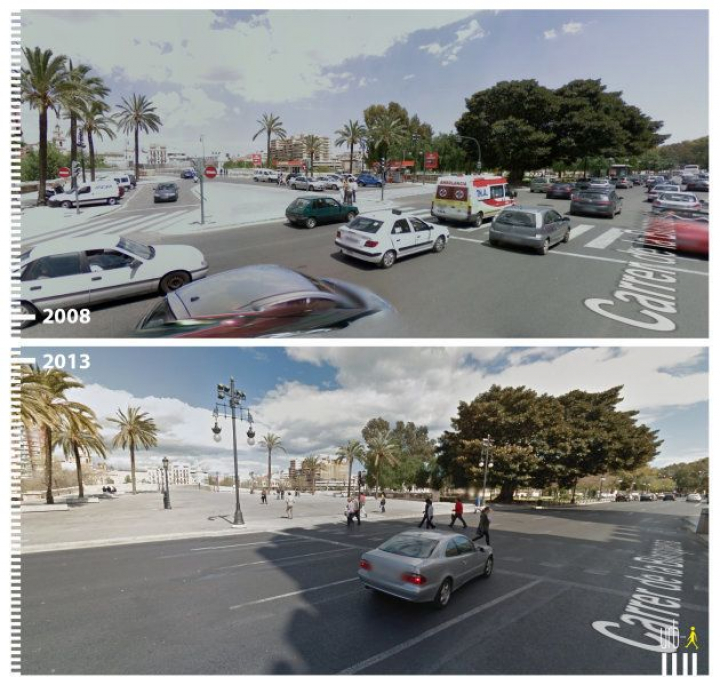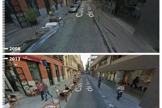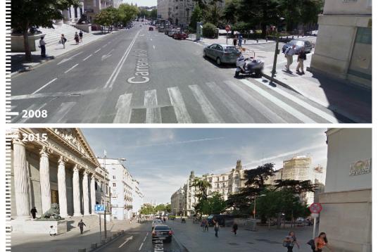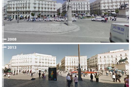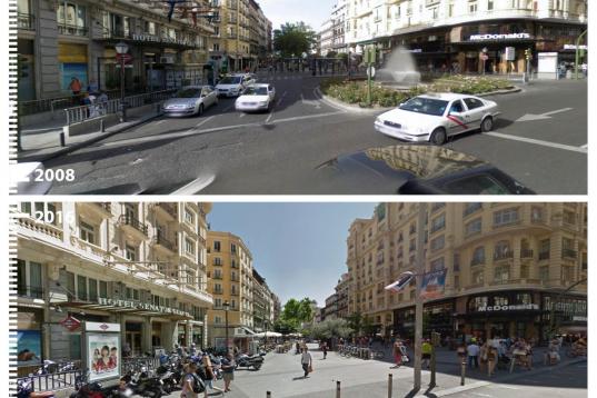 Con imágenes tomadas de Google Maps, esta web ha elaborado varias comparativas en las que podemos observar, por ejemplo, cómo se han peatonalizado algunas zonas de las grandes capitales de España.