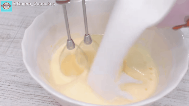 4. Añadir la leche y el extracto de vainilla (opcional) y seguir batiendo.