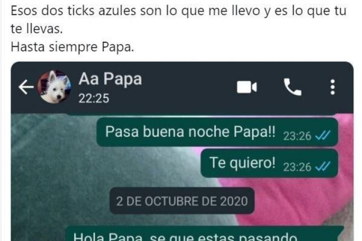 “Esos dos ticks azules son lo que me llevo y es lo que tú te llevas. Hasta siempre Papa”, ha escrito Víctor junto al mensaje, que su padre sí leyó pero nunca llegó a responder.