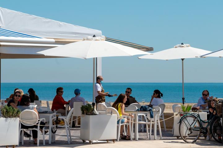 - La hostelería, bares y cafeterías podrán abrir hasta el 75% del aforo, y se autorizará el uso de la barra con una distancia de 1,5 metros de seguridad mientras que las terrazas estarán al 100% con dos metros entre mesas, que no superarán los 20 comensales.