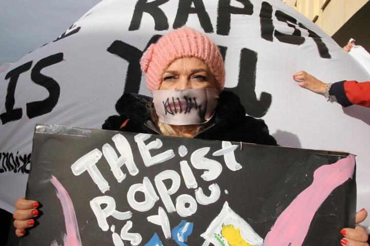 Varias activistas chipriotas, británicas e israelíes acudieron a las puertas del tribunal para apoyar a la joven, con pancartas con proclamas como ‘Yo sí te creo’ o ‘El violador eres tú’.