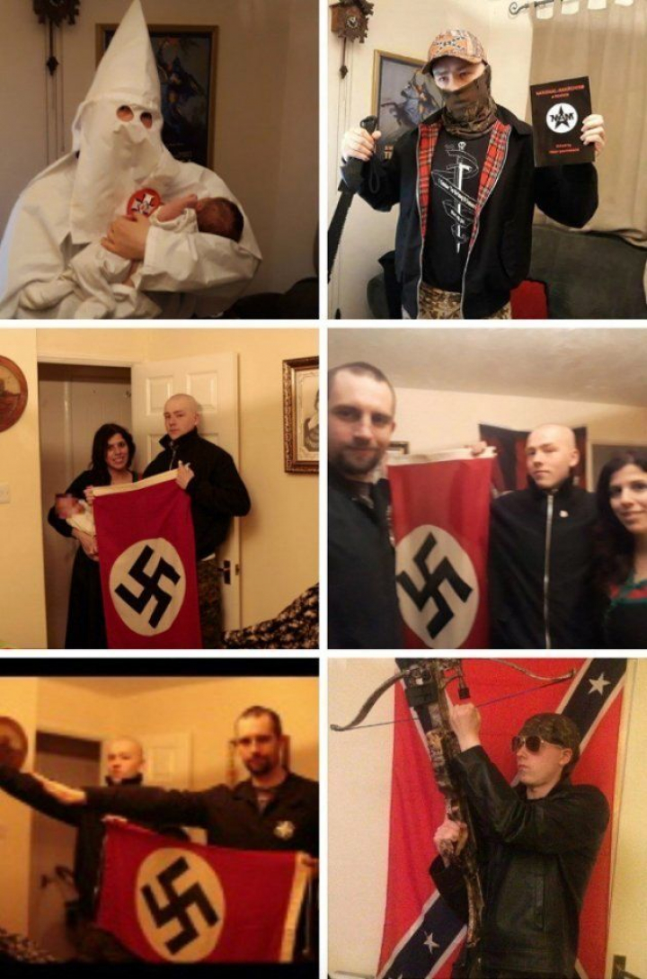 Los registros realizados por las fuerzas de seguridad se saldaron con la incautación de gran cantidad de material neonazi, así como con imágenes en las que se aparece Thomas con el atuendo propio del Ku Klux Klan mientras sostenía al bebé. El joven intento explicar en vano que era "solo teatro".
