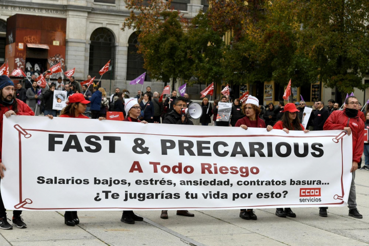 “Además de estar jodido, te juegas la salud”, resume Patricia Libertad, que como Directora de Comunicación de Servicios de CCOO conoce de cerca la situación. Libertad colabora en la campaña ‘Fast & Precarios. Jugarse la vida por 394,88 € al mes’, lanzada por el sindicato para denunciar la precariedad en el sector de la comida rápida. “Porque si el sector de la hostelería es precario de por sí, el de la comida rápida, mucho más”, explica Javier Godoy, que lleva 12 años trabajando en un Domino’s Pizza de Madrid.