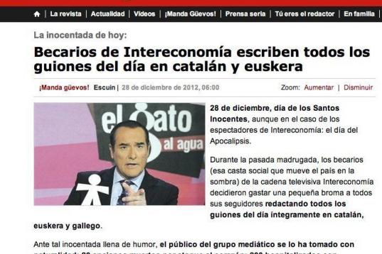 La mujer estuvo feliz por la entrevista, presumió de ella con sus vecinas y nadie supo nunca que todo fue una broma salvo los más cercanos. “Aún hoy me da rabia contarlo por si mi abuela, que ya no está, se entera y se desilusiona”, reconoce Jaime. “Era tan buena conmigo que lo solucionaría entornando el ojo izquierdo y soltando un ‘pero que tiñoso es’ y santas pascuas. Desde aquella, nunca más hice bromas el día de los inocentes. Por si acaso”, concluye.