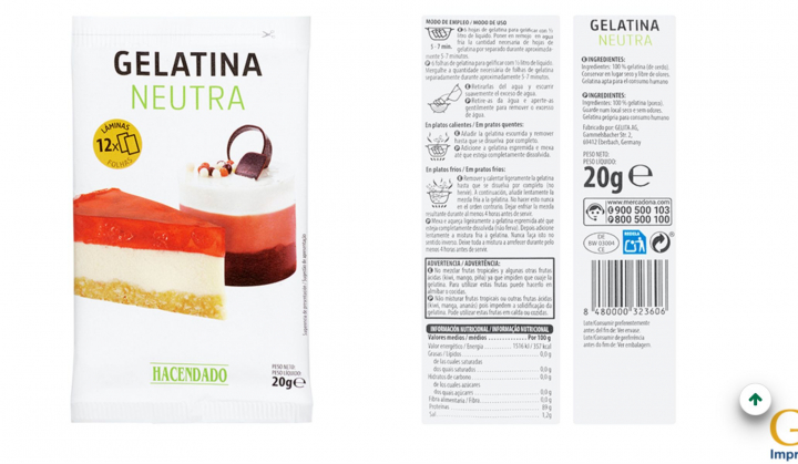 La alerta sanitaria la han transmitido las autoridades sanitarias de la Comunidad Autónoma de Madrid “relativa a la presencia de Salmonella en gelatina neutra en láminas de la marca Hacendado, procedente de Alemania”.