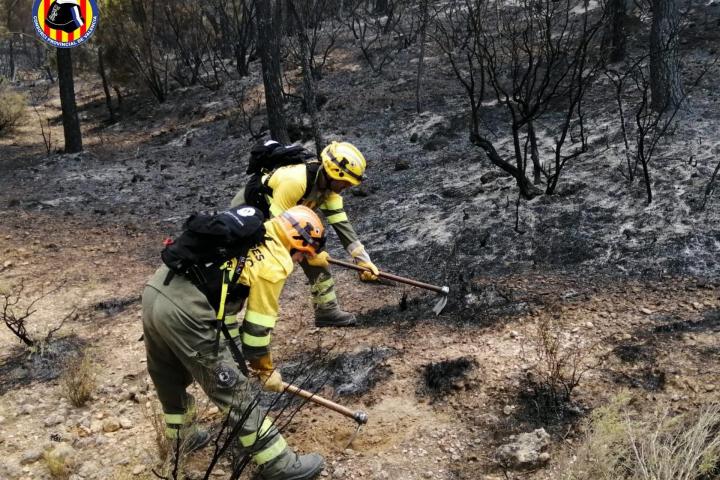 El incendio forestal en Venta del Moro (Valencia), que ha arrasado desde el domingo 1.300 hectáreas en el límite entre Valencia y Cuenca, se ha dado por controlado a las 20 horas de este viernes.