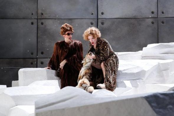 En el entreacto se recuerdan las palabras de Copi acerca de su Eva. Él fue claro en que esta obra no era un trasunto político, aunque ahora y más cuando se estrenó resulte difícil no verla y leerla en esos términos. El caso es que la reina se muere. El (deterioro) físico le obliga a despedirse de su mundo. Un mundo caprichoso en el que poder permite querer una cosa para inmediatamente querer su contraria. Un mundo en el que es difícil saber quién te quiere. Quien te ama. Un mundo en el que los poderosos se convierten en dependientes de la gente que está a su servicio. Un mundo que impide escapar si no es muriéndose. O se mata o se muere en este juego. No hay otra forma de salir indemne, aunque se haga por la puerta de atrás como este personaje. De incognito y con las cuentas en Suiza, u otros paraísos fiscales, llenas de pesos.